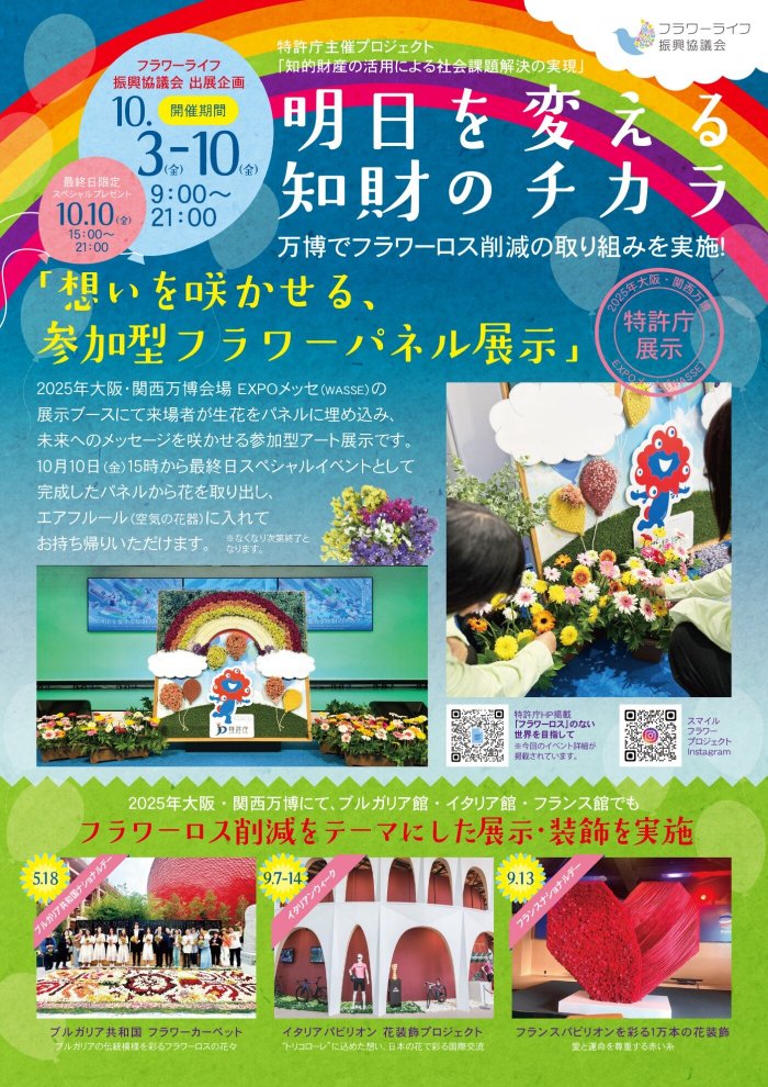 弊社のフラワーロス削減を目的とした事業「スマイルフラワープロジェクト」は、一般社団法人フラワーライフ振興協議会と共同で出展。