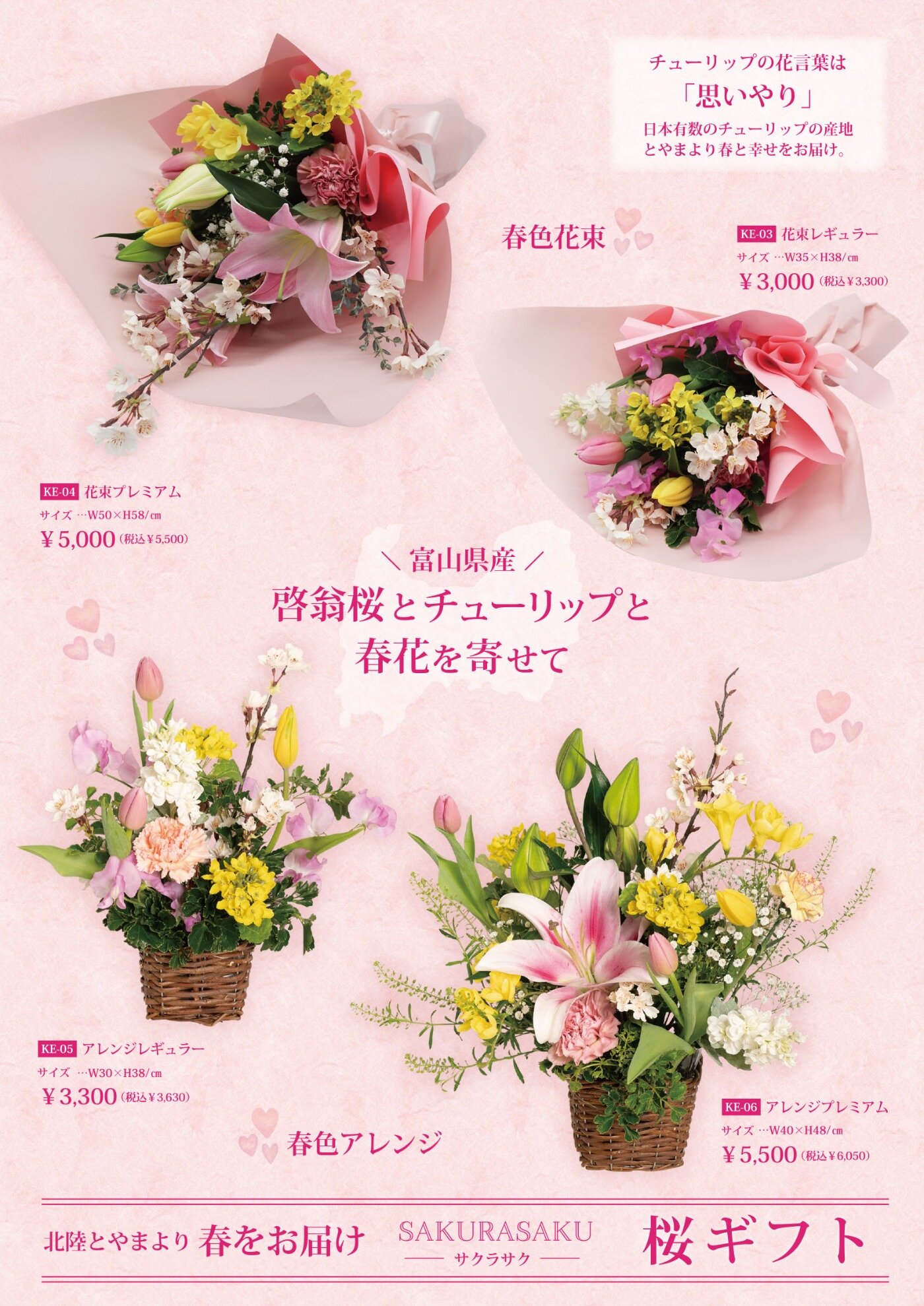 富山県産の「チューリップ」など、早春を彩るお花たちを寄せた