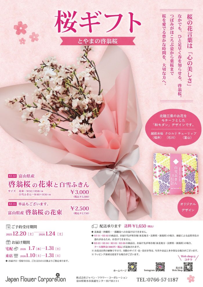 ひとあし早い春を奏でて。冬に春を咲かせる「啓翁桜」、彩り清らかな「チューリップ」など、早春ギフトをご用意しました。